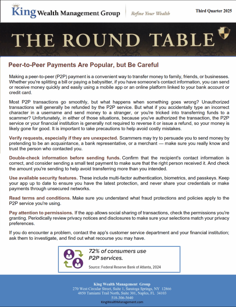 For practical advice relating to money matters, please take a look at our latest newsletters. The Round Table is published quarterly and is distributed to current and potential clients.